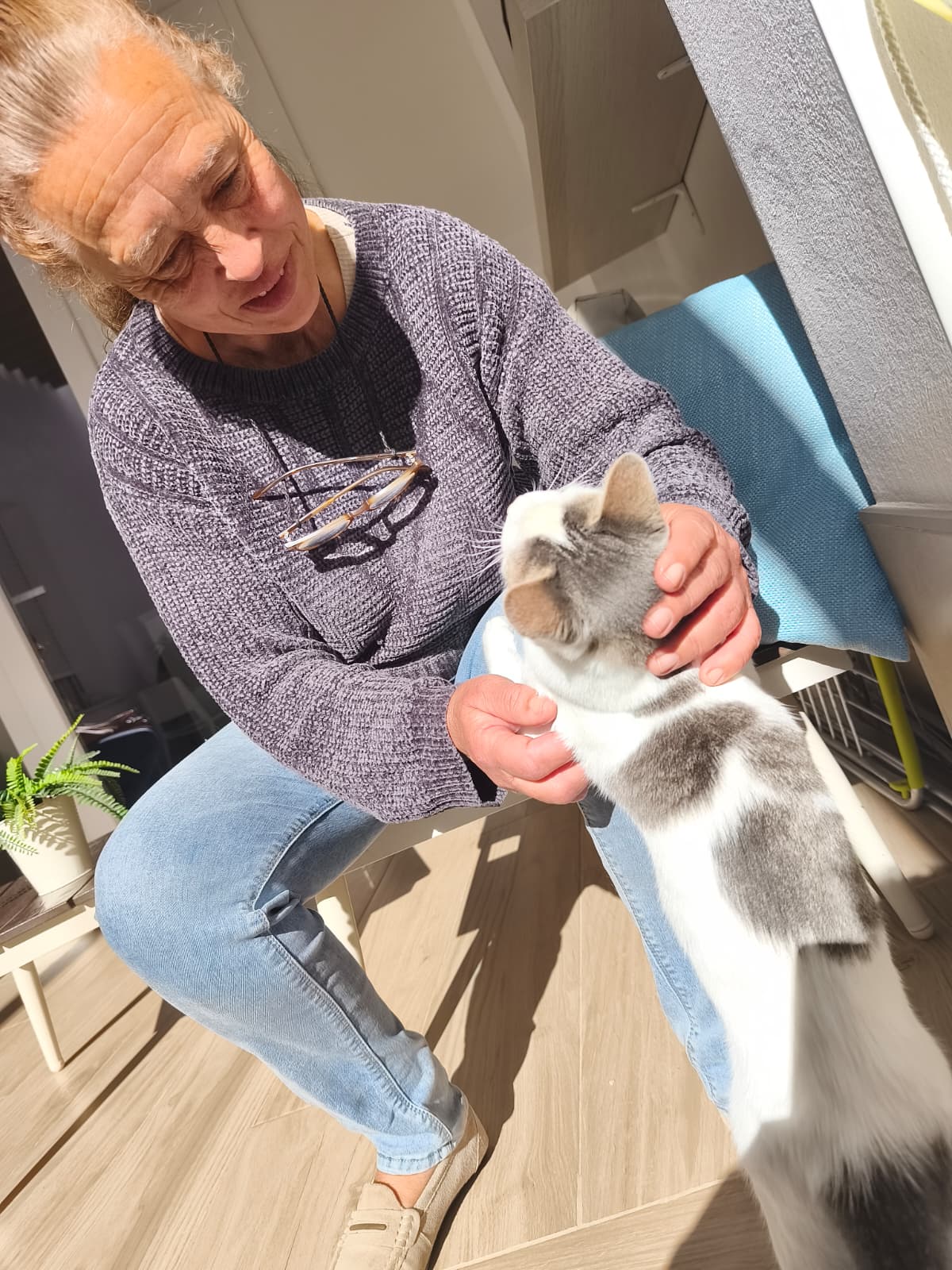 Ella, con su presencia, le aporta compañía y cariño.