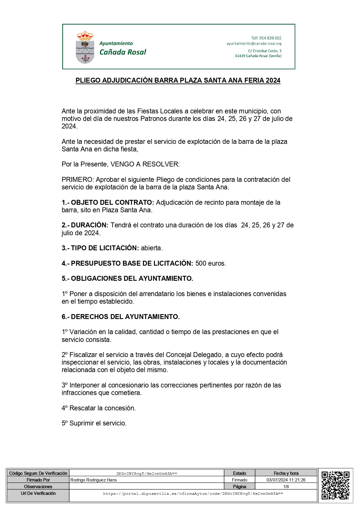 PLIEGO DE ADJUDICACIÓN BARRA PLAZA SANTA ANA FERIA 2024