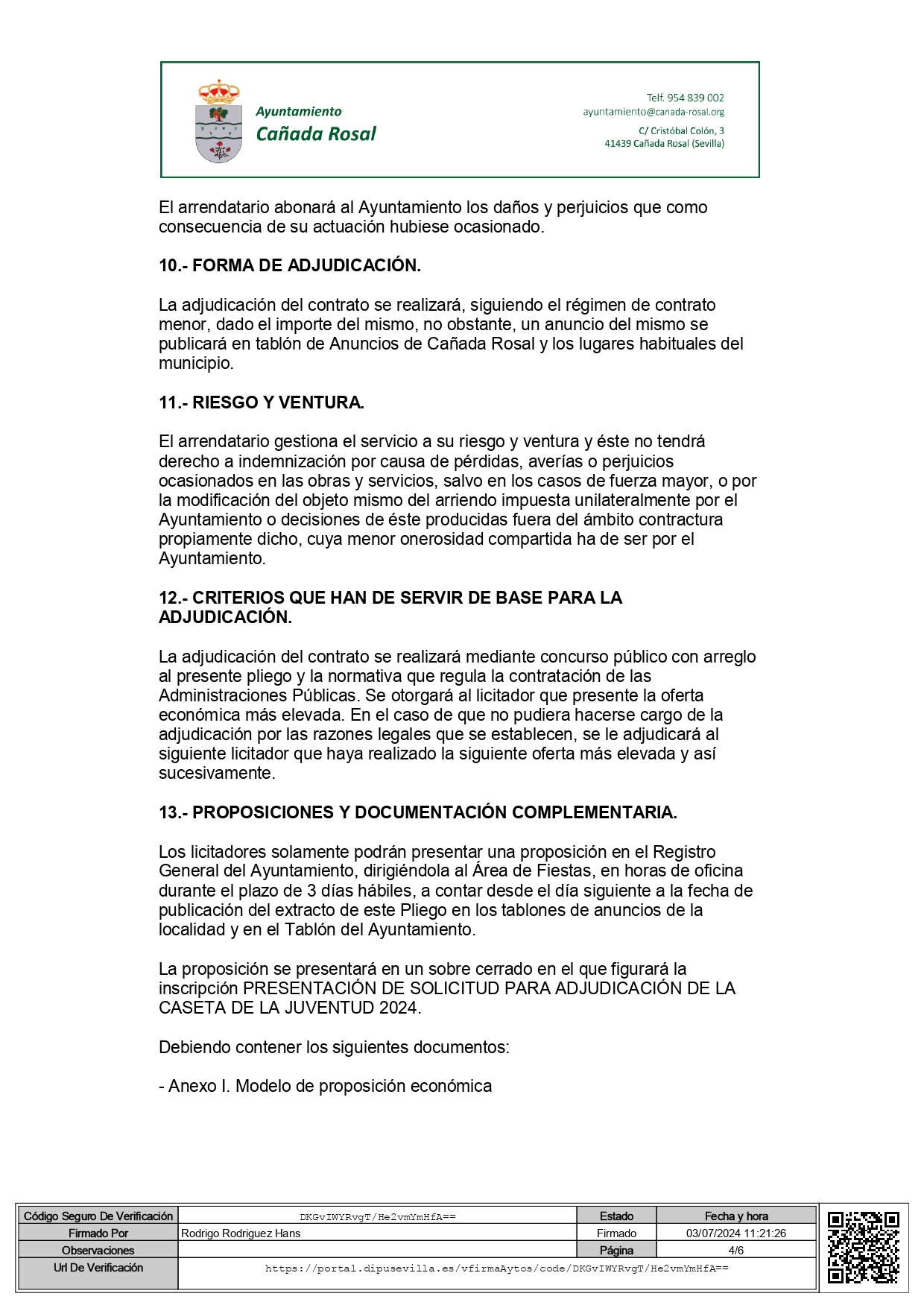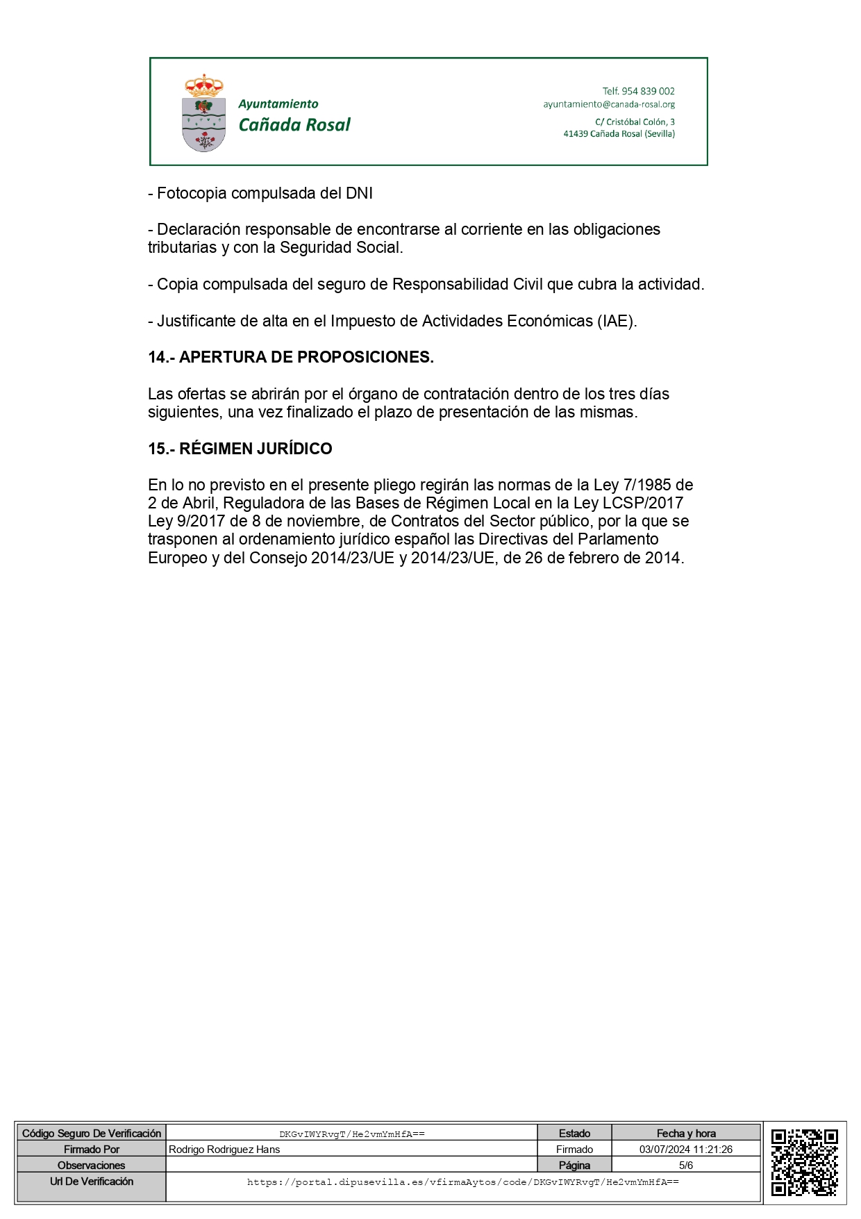 Lugar: Registro del Ayuntamiento de Cañada Rosal.