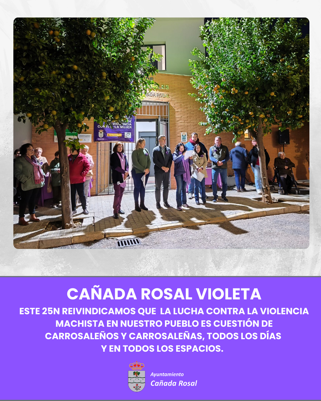 Este 25 de noviembre, Día Internacional de la Eliminación de la Violencia contra la Mujer, reivindicamos que hacerle frente a la violencia machista en nuestro pueblo es cuestión de todos los carrosaleños y las carrosaleñas, todos los días y en todos los espacios.