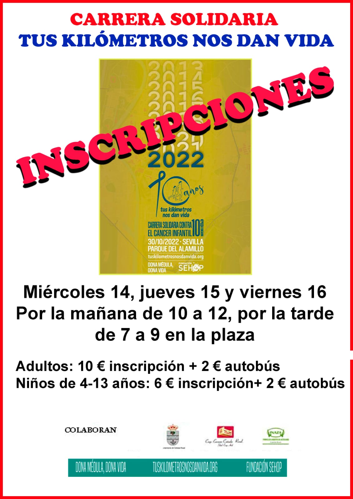 INSCRIPCIONES PARA LA CARRERA SOLIDARIA "TUS KILÓMETROS NOS DAN VIDA"
