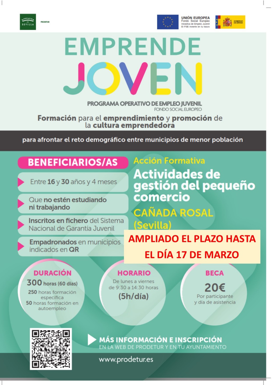 Desde el ayuntamiento de Cañada Rosal, se sigue apostando por la formación de los jóvenes. En esta ocasión, el municipio se ha adherido al programa operativo de Empleo Juvenil, conocido como Emprende Joven, del Fondo Social Europeo.
