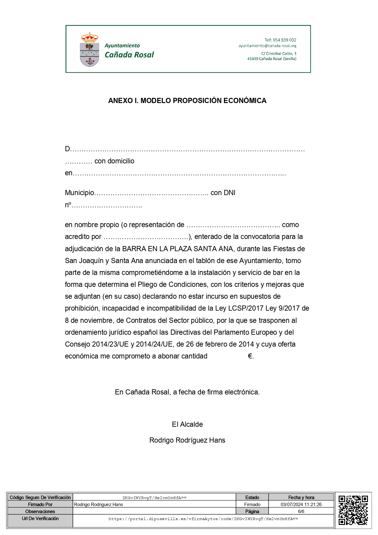 Lugar: Registro del Ayuntamiento de Cañada Rosal.