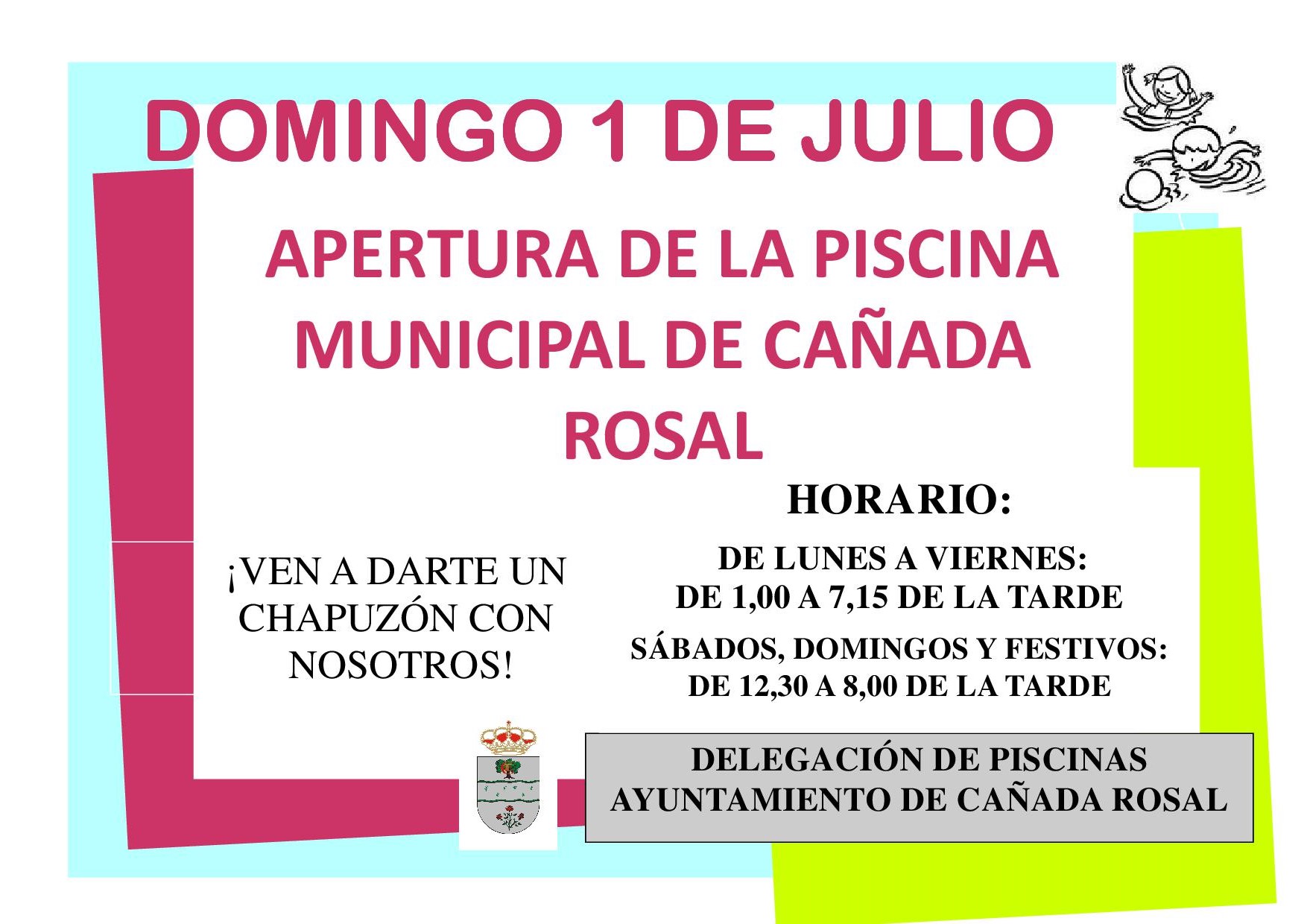 Los vecinos y vecinas de Cañada Rosal podrán disfrutar en pocos días, de la piscina municipal. Las instalaciones abrirán sus puertas el próximo 1 de julio y estarán disponibles para los carrosaleños y carrosaleñas durante todo el verano, en los meses de julio y agosto. Para ofrecer un mejor servicio, se han realizado obras de mejora como la de los vestuarios o los baños así como también, se han llevado a cabo preparativos de pintura, limpieza, mantenimiento de césped o control de agua. Además del uso público de esta piscina, en las instalaciones se llevarán a cabo múltiples actividades acuáticas. Desde las Escuelas Deportivas Municipales se han ofertado un gran número de ellas dirigidas tanto a los pequeños como a los adultos. Entre otras, destacan la adaptación al medio acuático, perfeccionamiento, actividades físicas y de salud o las de alta intensidad. Todas ellas se pondrán en marcha el próximo lunes 2 de julio y aquellos que estén interesados en llevarlas a cabo, podrán inscribirse directamente en la piscina municipal, en el horario de cada una de las actividades que se imparten