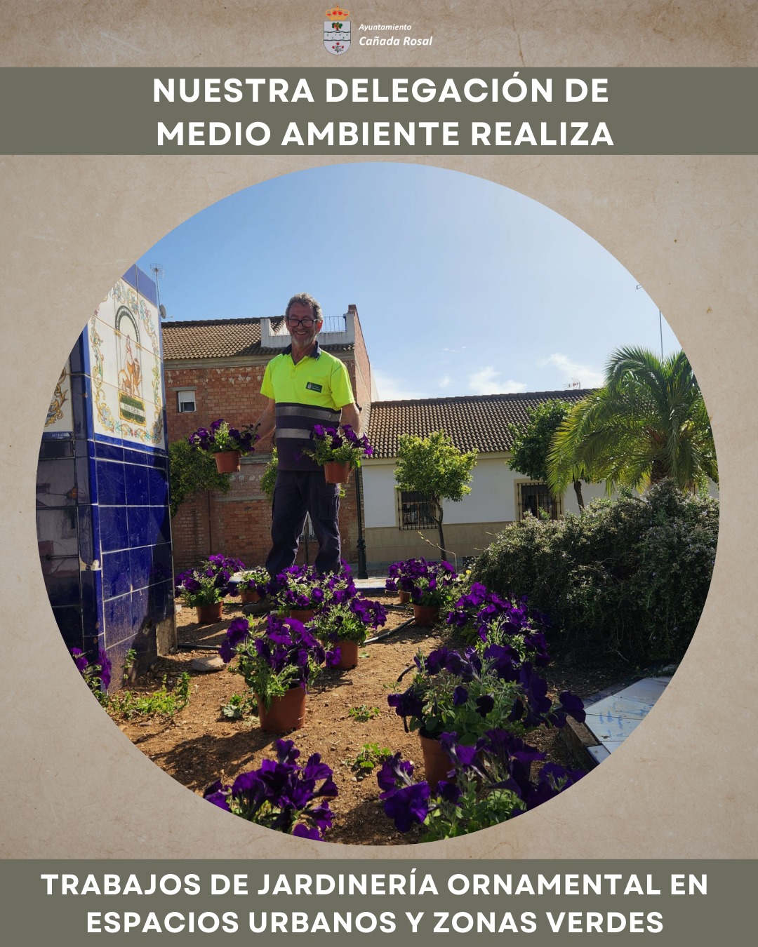 La Delegación de Medio Ambiente del Ayuntamiento de Cañada Rosal está llevando a cabo trabajos de jardinería ornamental en distintos entornos urbanos y zonas verdes de nuestro pueblo.