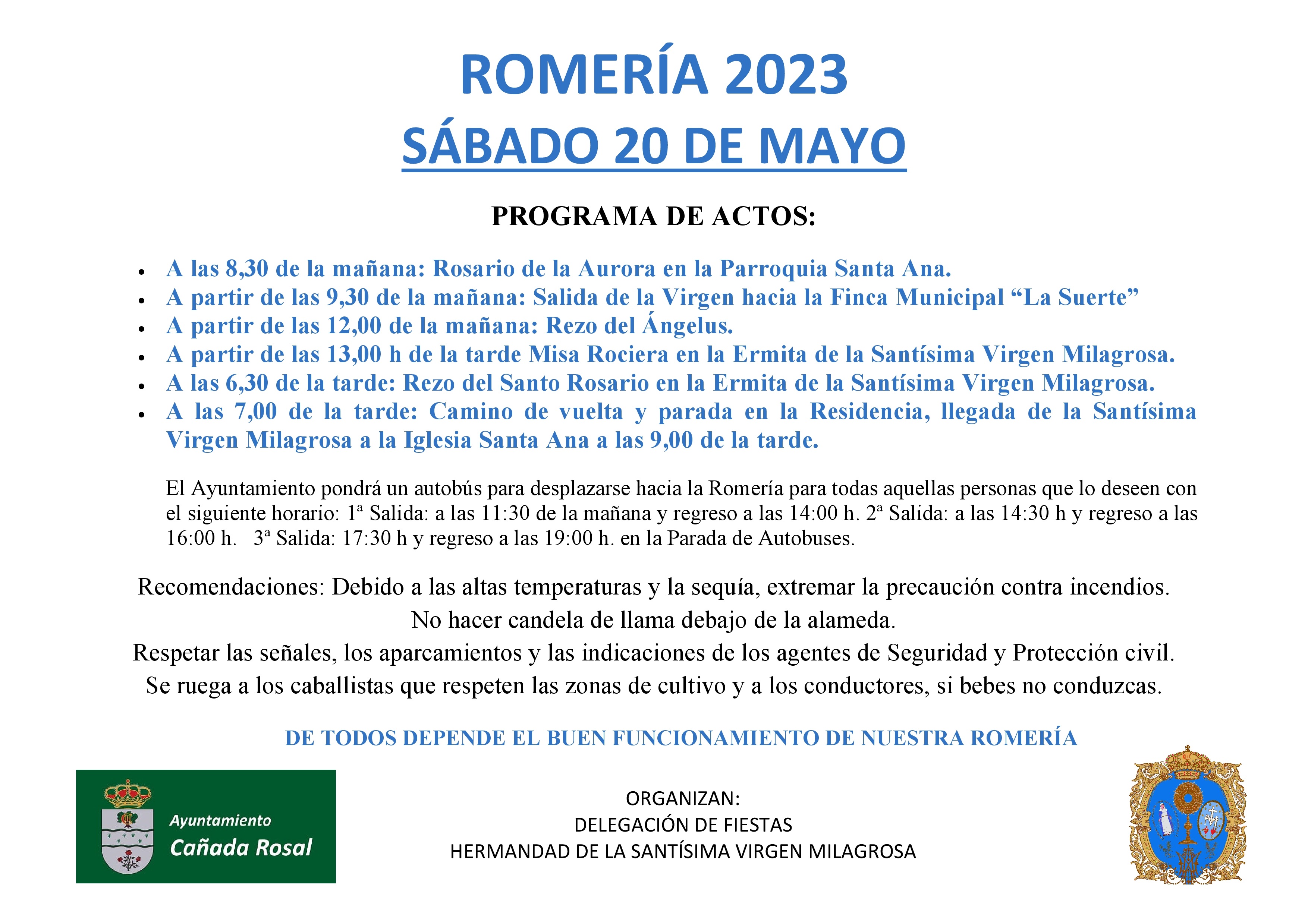 PROGRAMA DE ACTOS Y CONCURSO DE CARROZAS ROMERÍA EN HONOR A LA SANTÍSIMA VIRGEN MILAGROSA