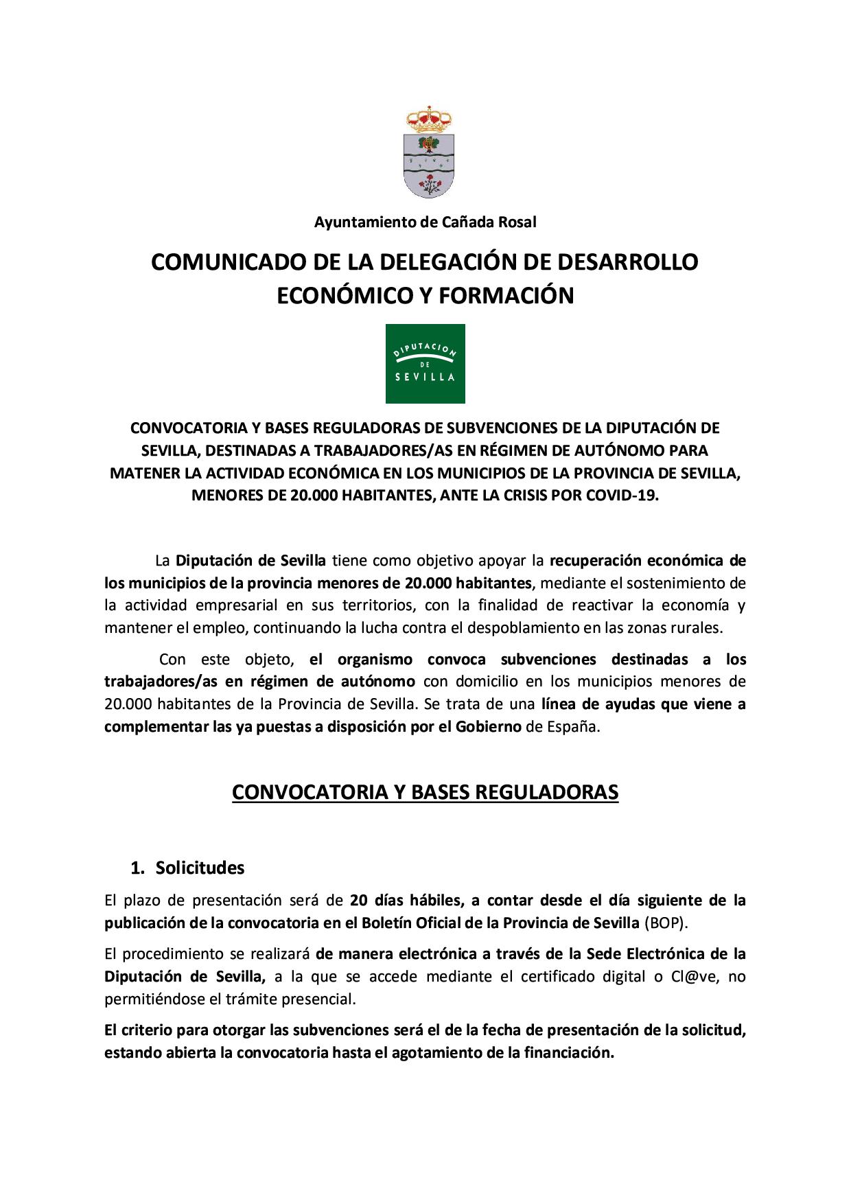 COMUNICADO DE LA DELEGACIÓN DE DESARROLLO ECONÓMICO Y FORMACIÓN