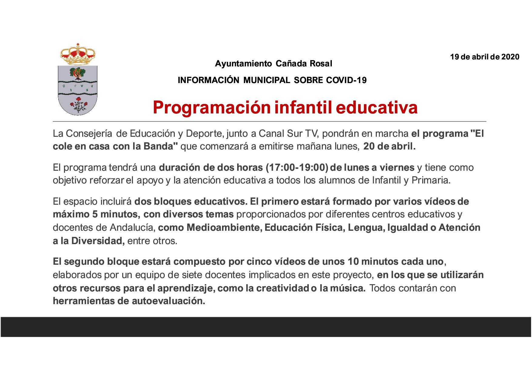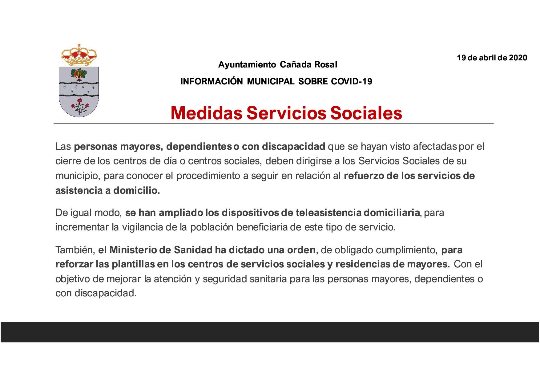 INFORMACIÓN MUNICIPAL SOBRE COVID-19 (19/04/2020)